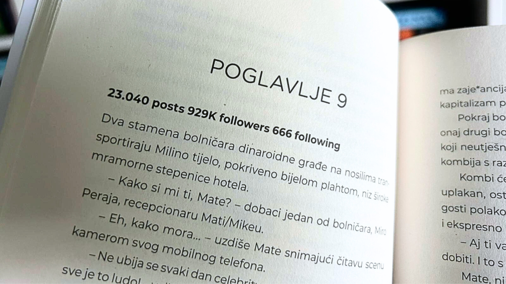 Dragojević kroz ovu priču ne promatra influencere samo kao karikature ili površne figure digitalne kulture. Naprotiv, on ih prikazuje kao ljude čiji je identitet postupno počeo ovisiti o reakcijama publike. Lajkovi, pregledi i komentari postaju svojevrsni dokaz postojanja, mali digitalni signali koji potvrđuju da je netko viđen, prepoznat i, barem na trenutak – relevantan. Upravo u tom trenutku roman prestaje biti samo satira i počinje funkcionirati kao psihološka studija o potrebi za priznanjem.