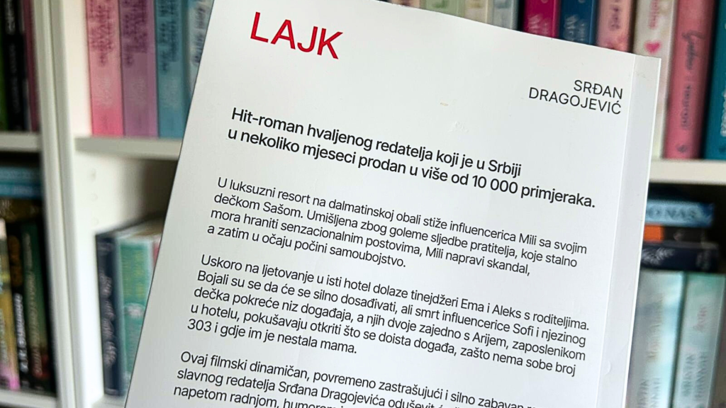 U vremenu u kojem se stvarnost sve češće mjeri ekranom, a osobna vrijednost pretvara u broj pregleda, roman Lajk autora i srpskog redatelja Srđana Dragojevića, dolazi kao nelagodno ogledalo društva u kojem živimo. Iako se knjiga često opisuje kao satirična i izrazito duhovita kritika influencerske kulture, moje iskustvo čitanja bilo je potpuno drugačije. Umjesto smijeha, ova knjiga u meni je probudila osjećaj tihe nelagode i tuge, jer sam je doživjela kao psihološki portret svijeta u kojem je potraga za pažnjom postala gotovo egzistencijalna potreba.