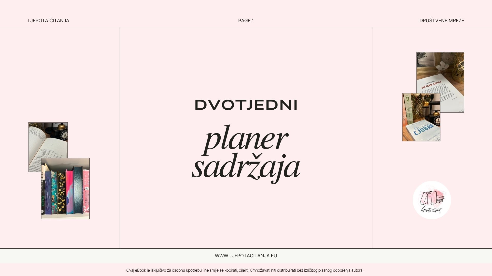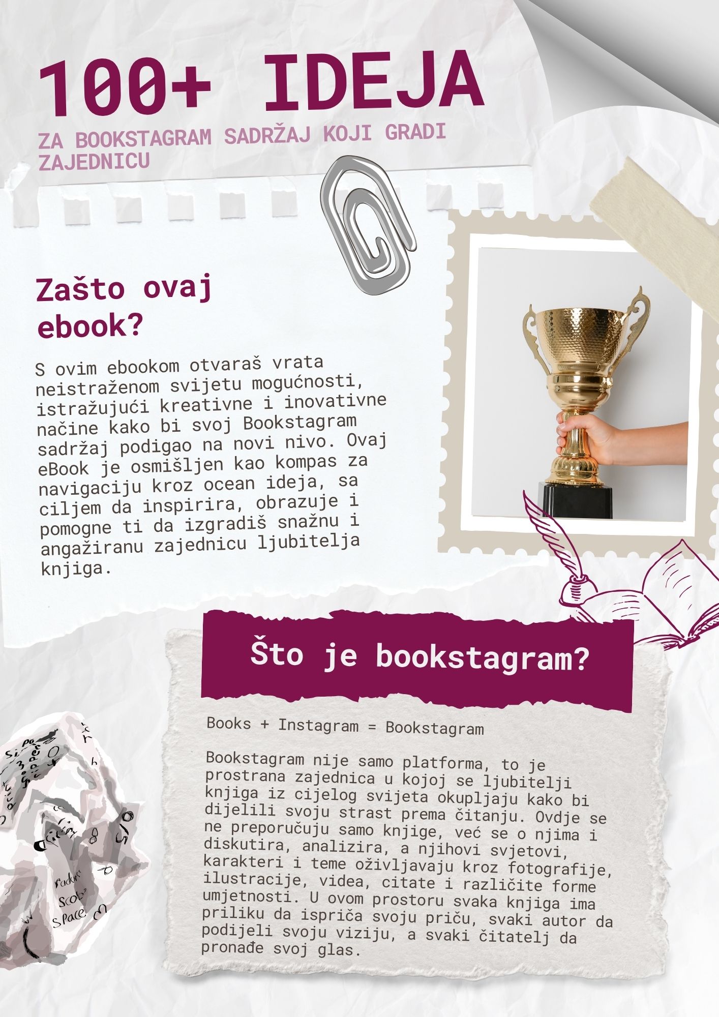 - Vizualni i video prijedlozi – reelsi, bookish photosessioni, infografike