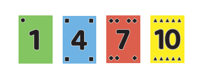 - sadržaj: 40 karata zelene, plave, crvene i žute boje s brojevima od 1-10. 14 karata s znakovima.