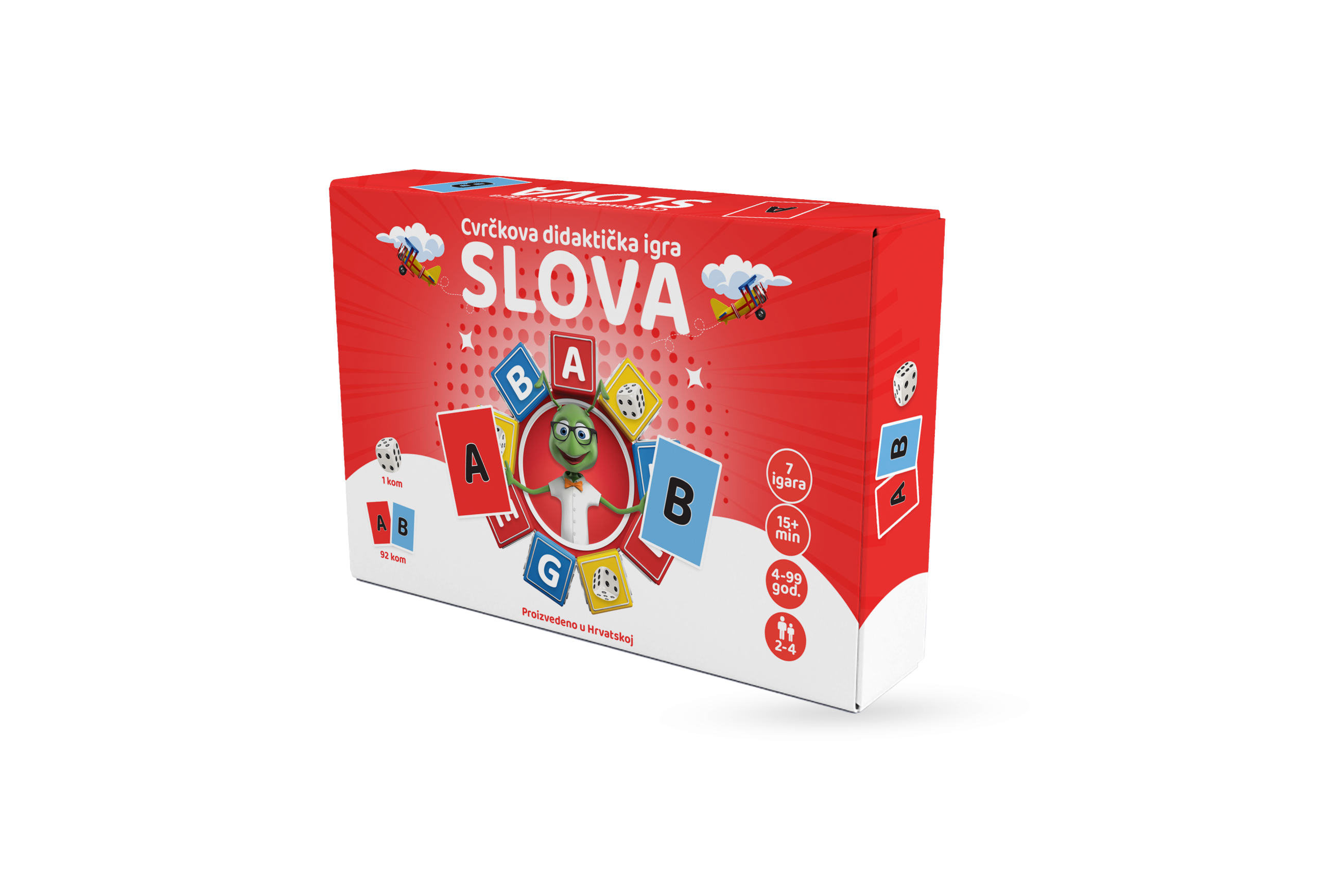 - Sadržaj: 92 kartice sa slovima, 1 kockica