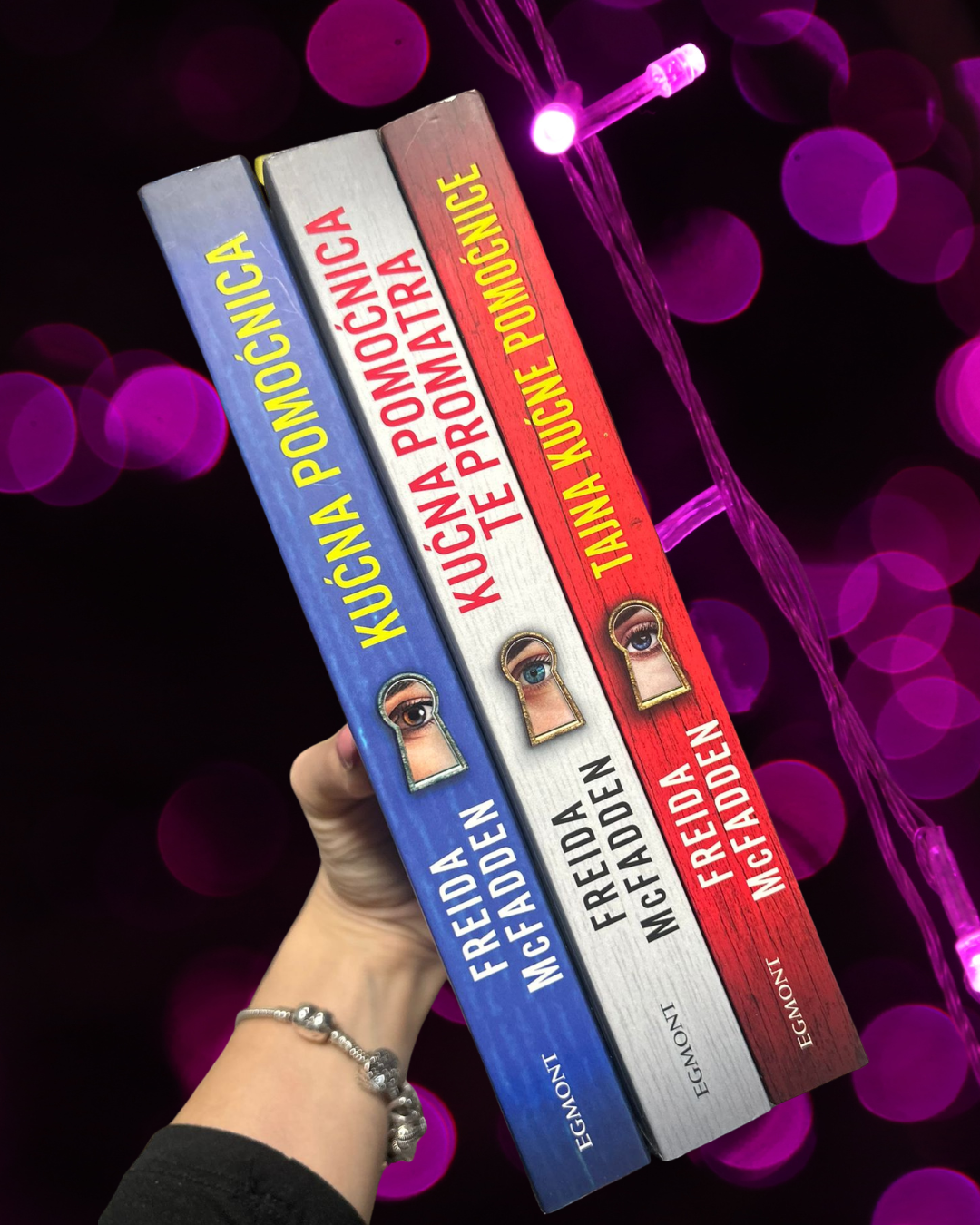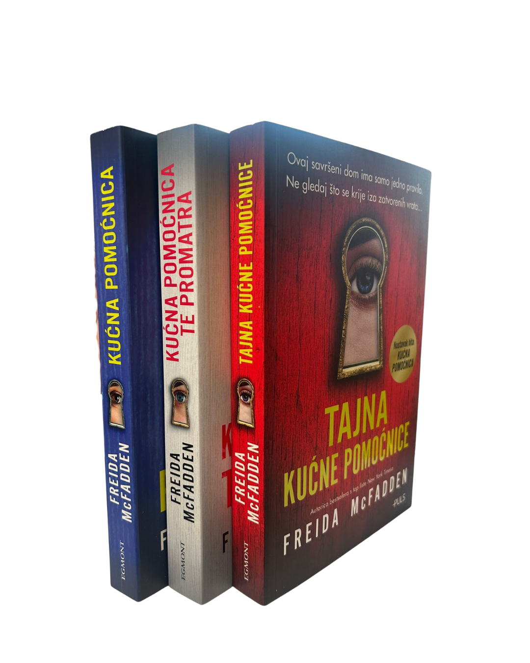 Ako voliš psihološke trilere koji se čitaju u jednom dahu, ovo je paket za tebe. Serijal Kućna pomoćnica Freide McFadden osvojio je čitatelje diljem svijeta – neočekivani obrati, napetost koja raste iz poglavlja u poglavlje i likovi kojima ne možeš potpuno vjerovati.